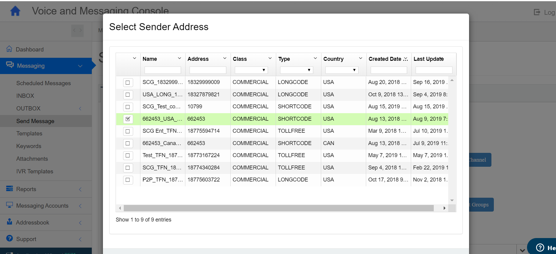 - In the Syniverse Message Console, navigate to the Messaging menu on the left nav-bar