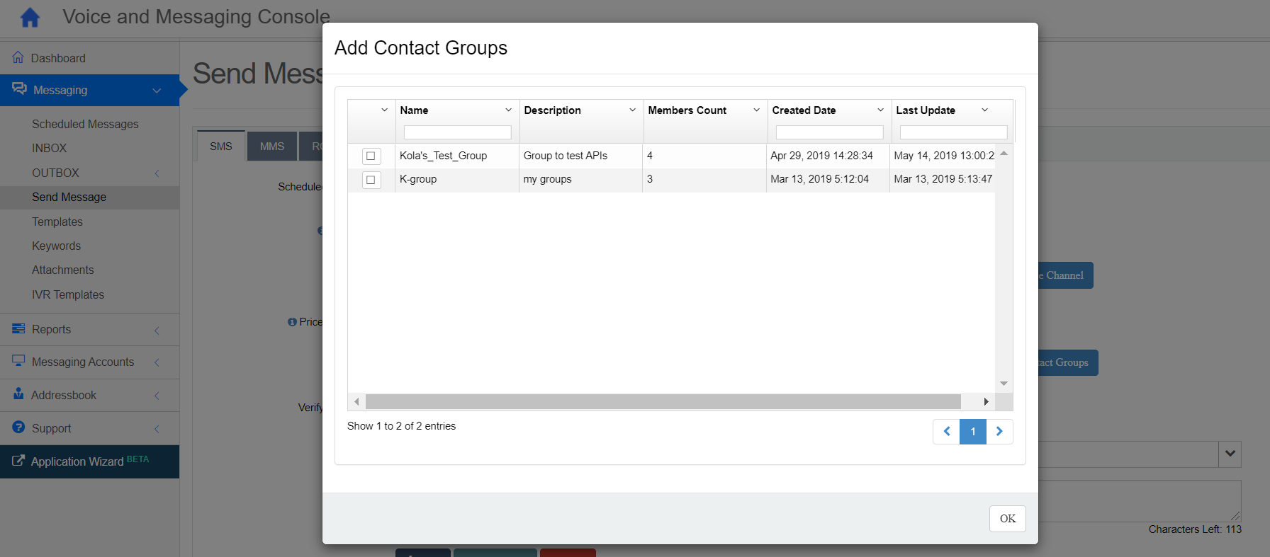 To Send a message to a contact group, you need to have created a contact group using at least 2 contacts (recipients with the same recipient address format e.g Mobile number)